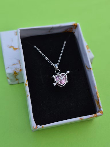 گردنبند قلب و تیر صورتی