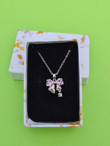 گردنبند قلب و پاپیون صورتی
