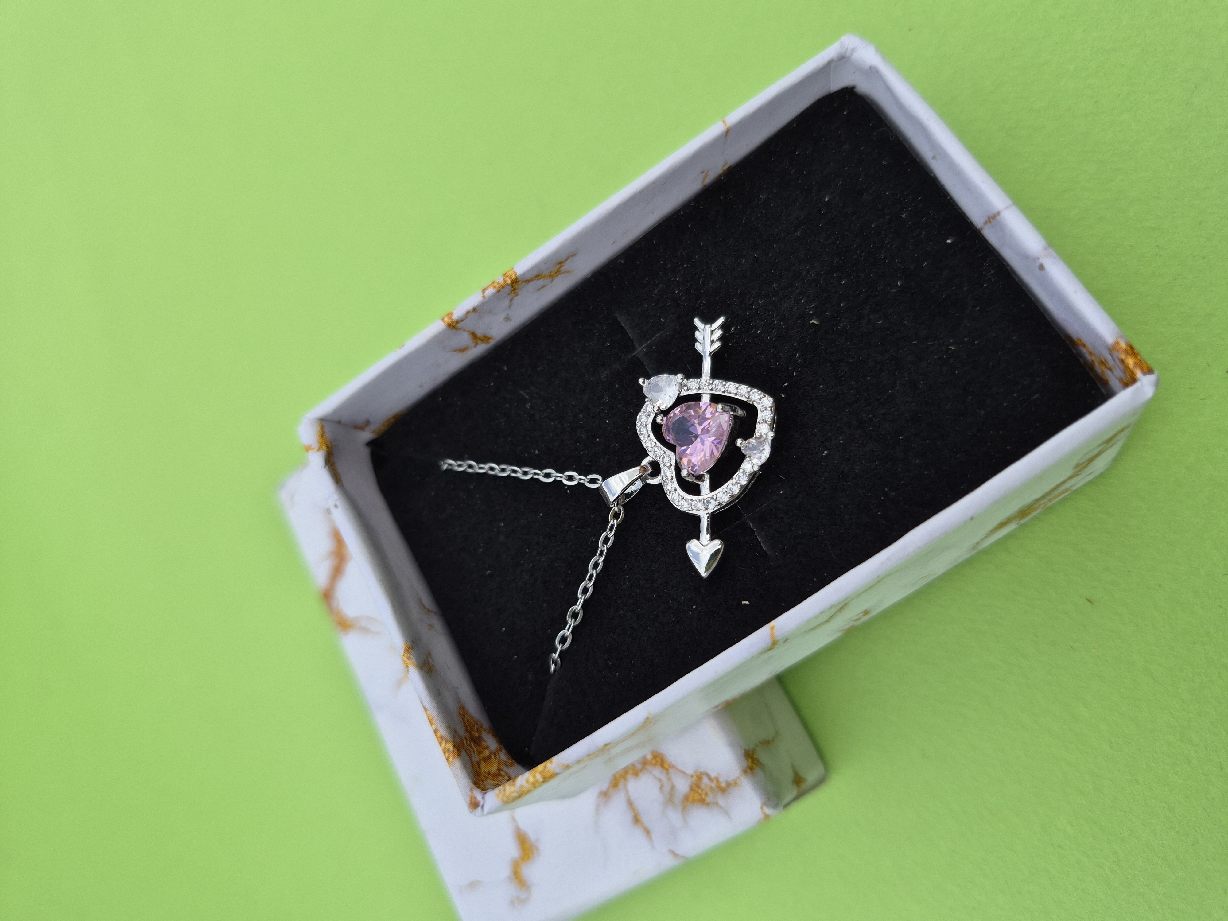 گردنبند قلب و تیر صورتی