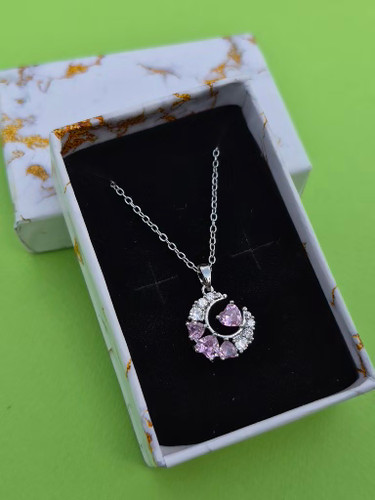 گردنبند ماه و قلب صورتی