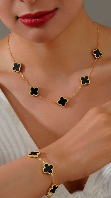 نیم ست گردنبند و دستبند ونکلیف با ترکیب رنگ مشکی و طلایی، انتخابی شیک و جذاب برای استایل روزمره و مجالس است. این ست از جنس استیل با رنگ ثابت ساخته شده و همهروزه مقاوم و با دوام است.